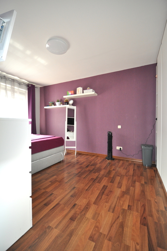 Das Obergeschoss bietet Ihnen drei Schlafzimmer. Zwei davon verfügen über einen, von beiden Zimmern aus begehbaren Balkon. Zusätzlich befindet sich auf diesem Stockwerk ein Tageslichtbad, ausgestattet mit Wanne, Dusche und edlen Marmorfliesen.