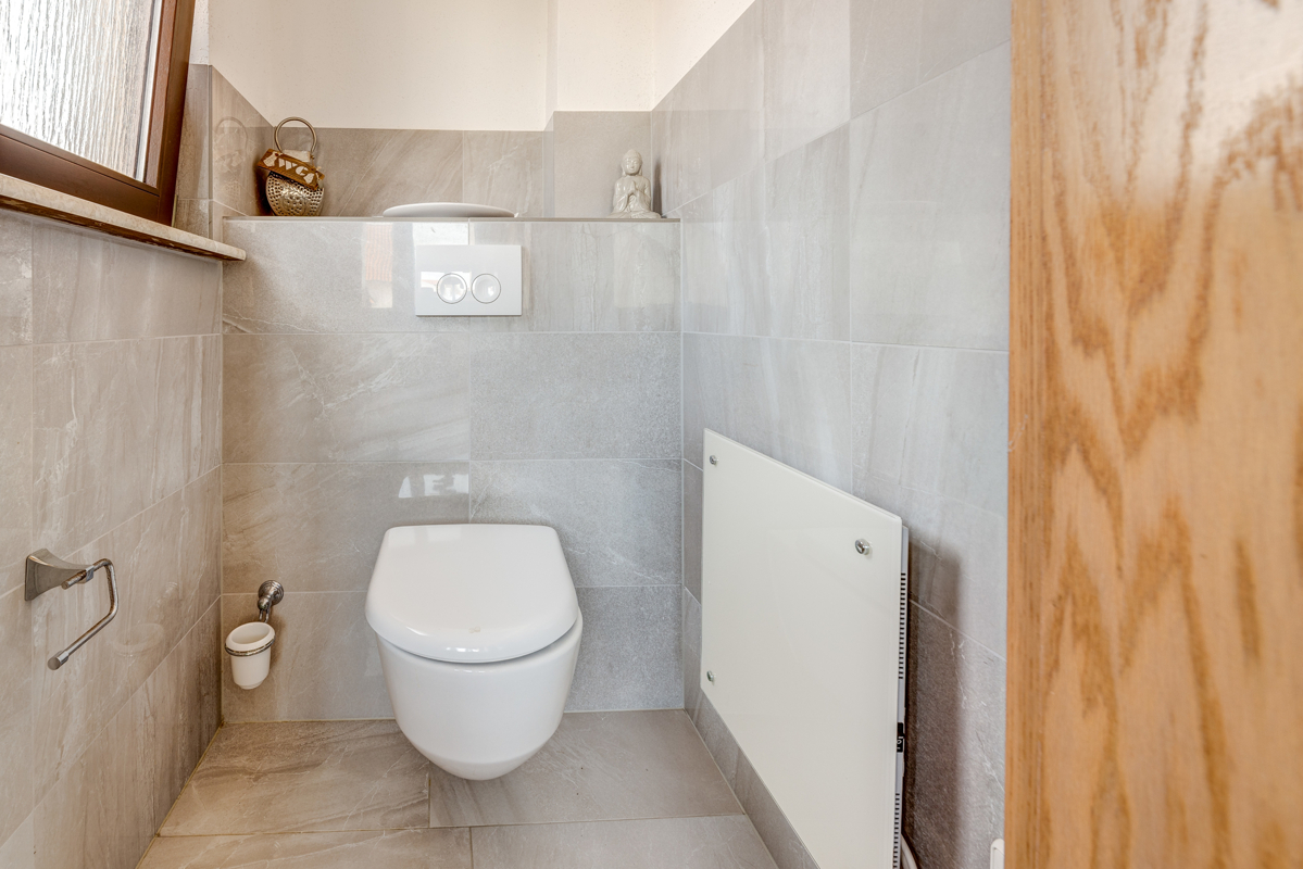 Im Erdgeschoß befinden sich ein Wohnzimmer, ein Schlafzimmer, sowie Küche, Bad und Gäste WC.