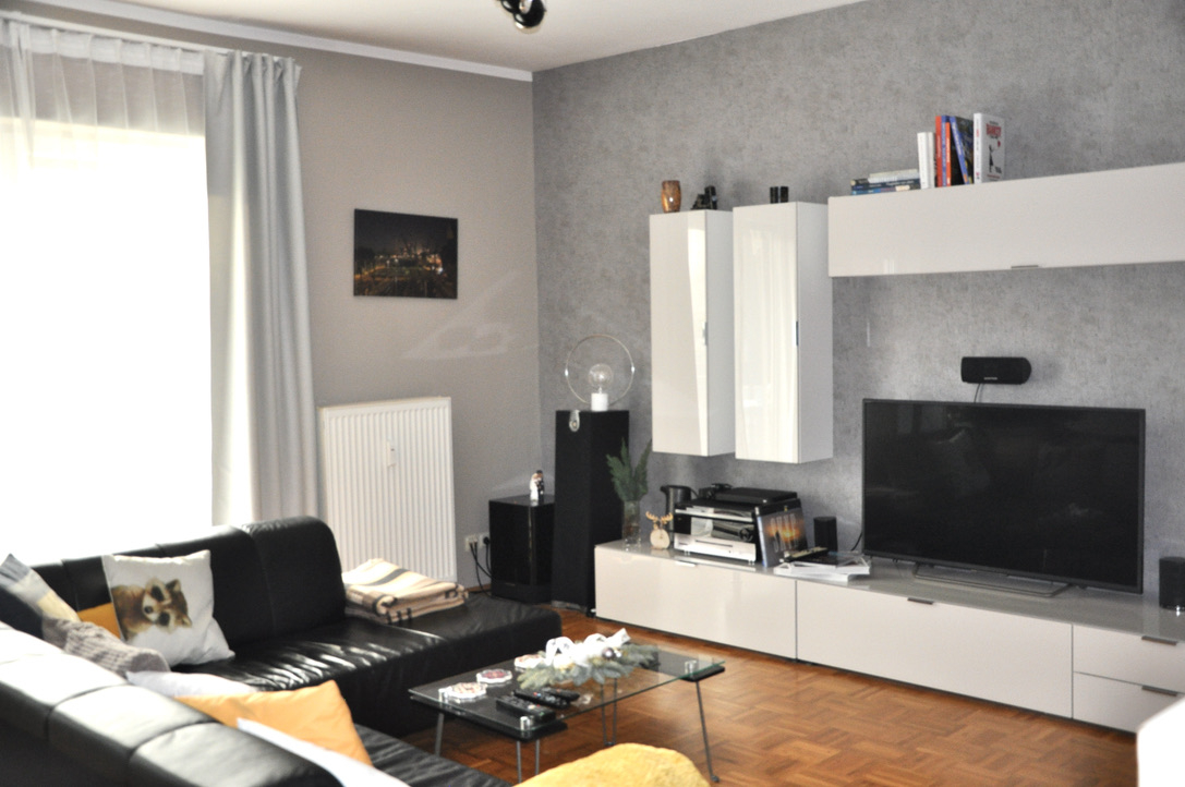 Die 3-Zimmer-Erdgeschosswohnung verfügt, auf ca. 109 m² Wohnfläche, über ein großes Wohnzimmer, zwei Schlafzimmer und eine geräumige Küche. Das Badezimmer, das Gäste-WC und der Abstellraum sind direkt über den Flur erreichbar.Eine großzügige Terrasse mit einem eigenen, kleinen Garten runden das Angebot ab.