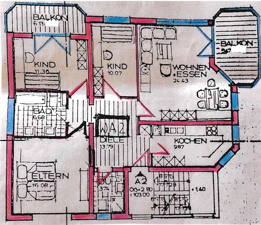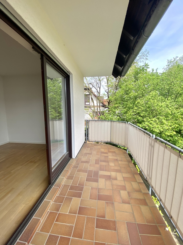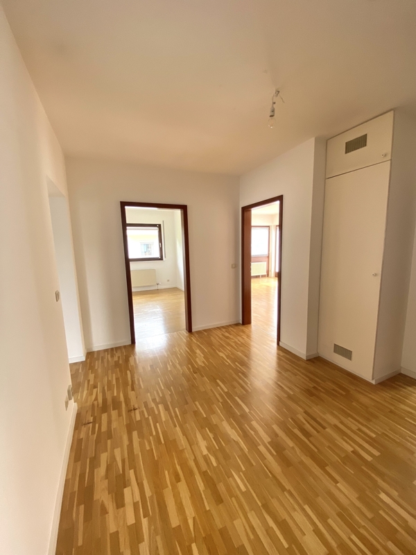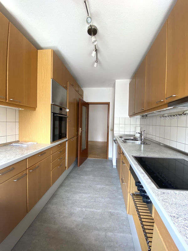 Zur Wohnung gehören eine Einbauküche, das Wohnzimmer mit Südbalkon, ein Schlafzimmer, sowie zwei weitere Zimmer. Ein Zimmer verfügt ebenfalls über einen Balkon.