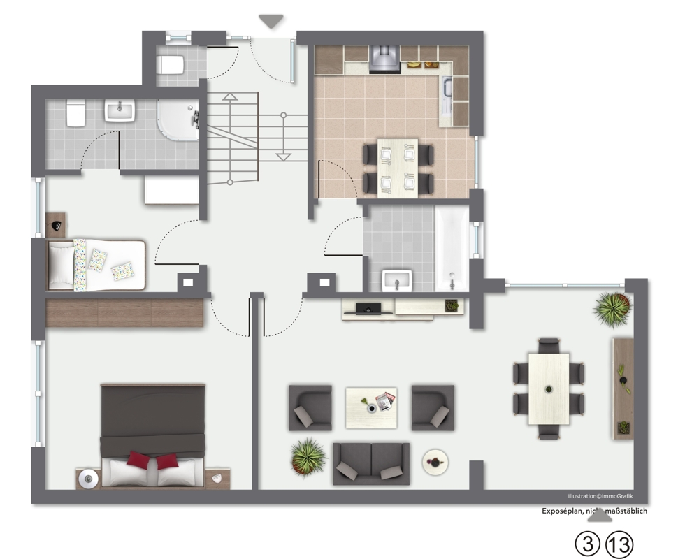 - 3 Tageslichtbäder- 2 Gäste-WC´s