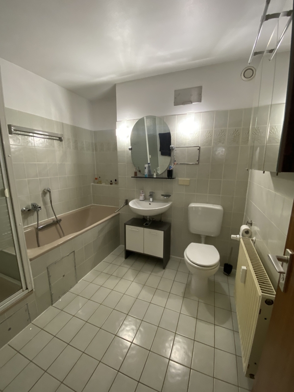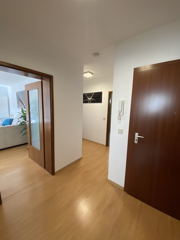 Das Badezimmer und der Abstellraum sind direkt über den Flur erreichbar.