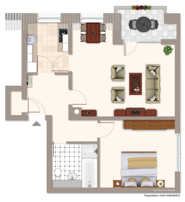 Kaltmiete € 655,- zzgl. Kfz-Stellplatz € 50,- = Kaltmiete gesamt € 705,--