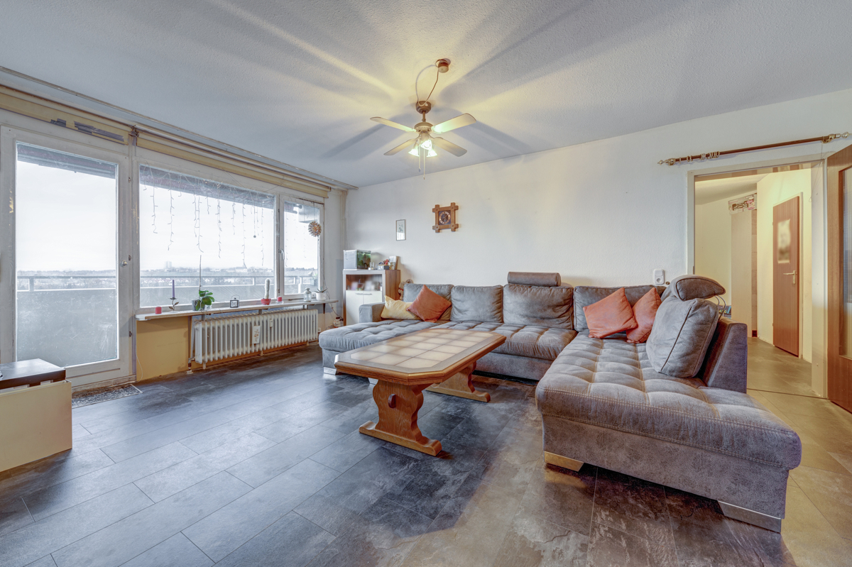Diese gut geschnittene 3,5-Zimmer-Wohnung befindet sich im bekannten Holzmannhaus. Sie verfügt über eine Wohnfläche von 107 m² mit großem Balkon und einem Ausblick der Sie begeistern wird.