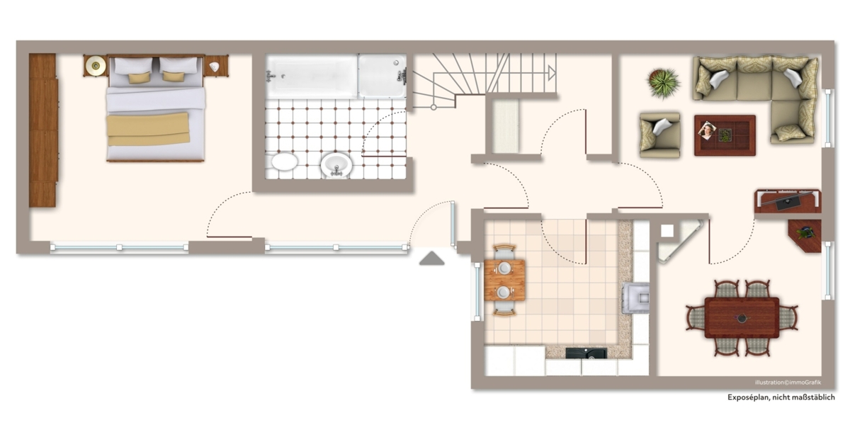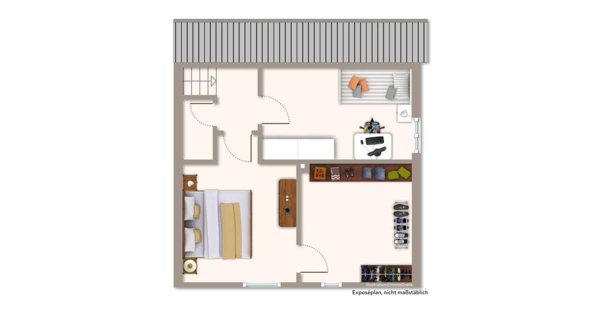 Bei mehr Platzbedarf bestünde auch, nach Absprache mit dem Bauamt, die Option das Obergeschoss auszubauen.