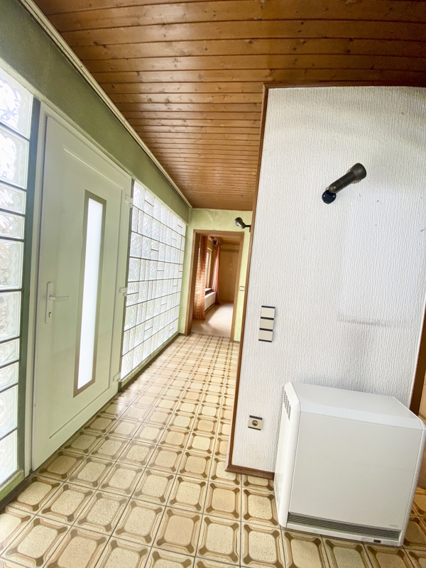 Durch den Anbau (fließt hier in der Berechnung in der Nutzfläche ein) haben Sie neben dem Eingangsbereich einen weiteren Raum mit großer Fensterfront mit Blick in den Garten.