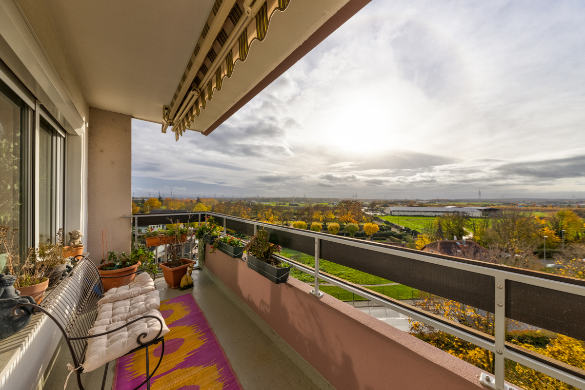 Vom Wohnzimmer gelangt man auf den Balkon, auf dem Sie den Sonnenuntergang genießen können.