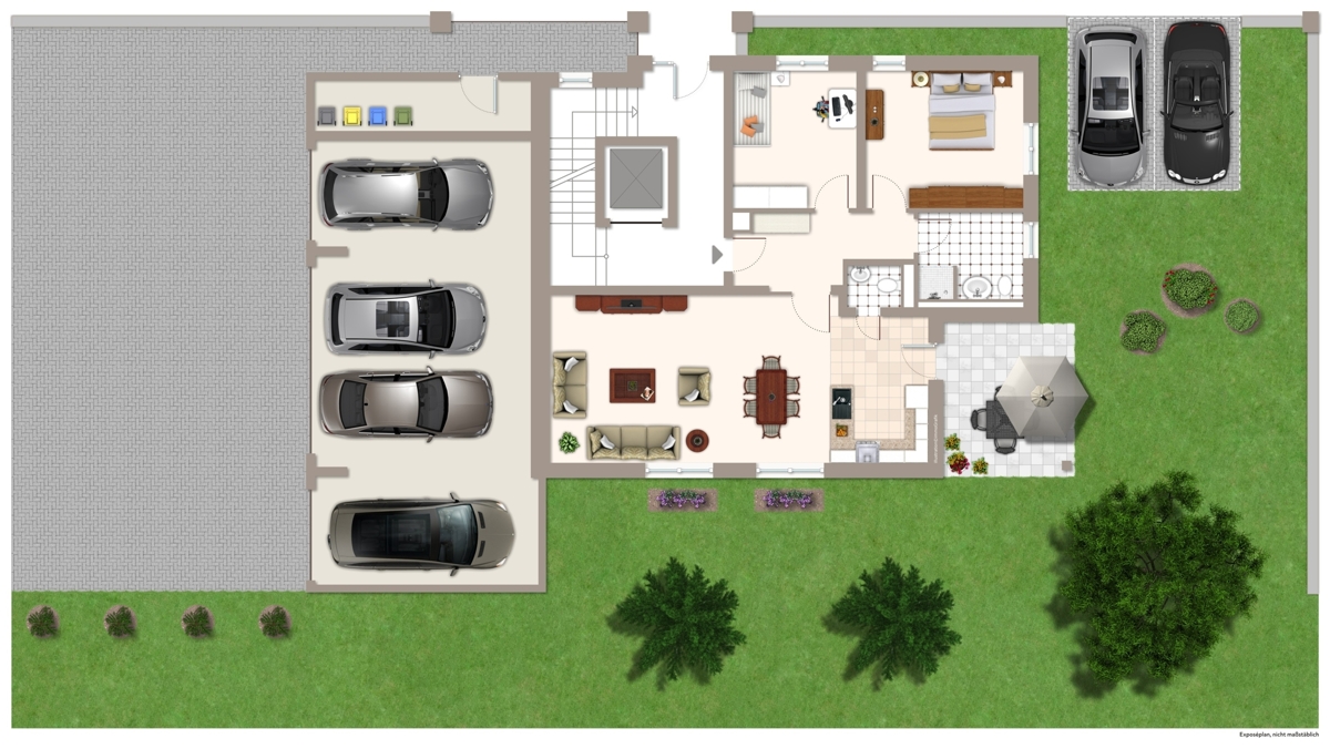 Die 2 KFZ Stellplätze sind dazu zu erwerben für je 15.000,-€.