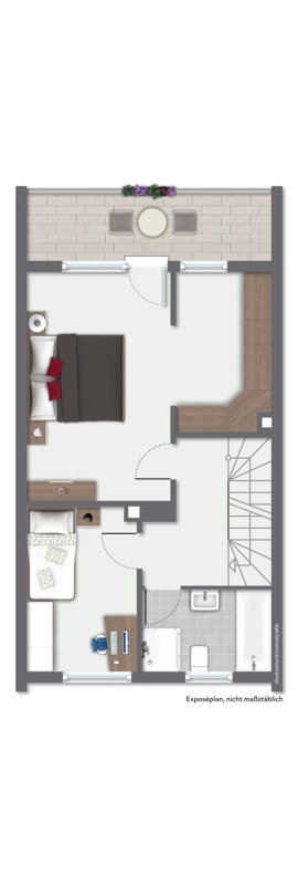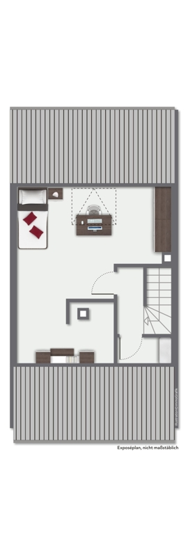 Das Dachgeschoss unterteilt sich in ein großes Zimmer, sowie einen kleinen Abstellraum.