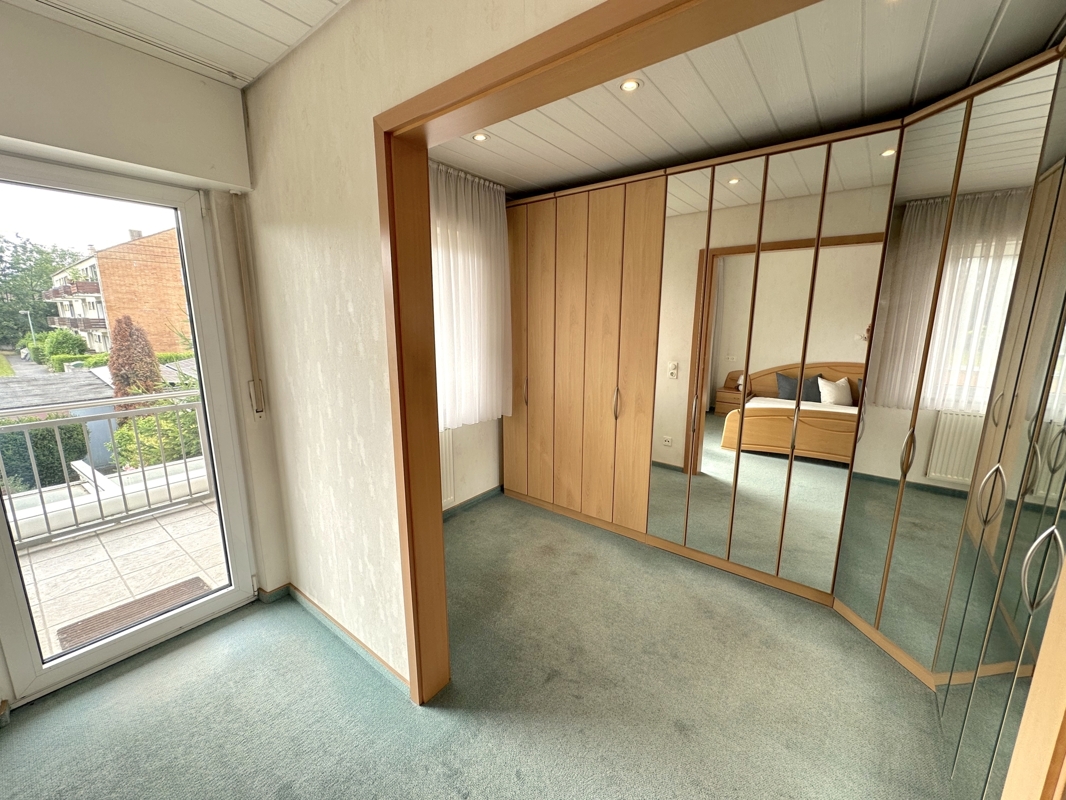 Im 1.Obergeschoss befinden sich das Schlafzimmer mit Ankleidezimmer, ein Kinder- oder Arbeitszimmer und ein Tageslichtbad mit Wanne und Dusche. Vom Schlafzimmer aus gibt es den Zugang auf den Balkon, hier lässt es sich an warmen Tagen herrlich entspannen.