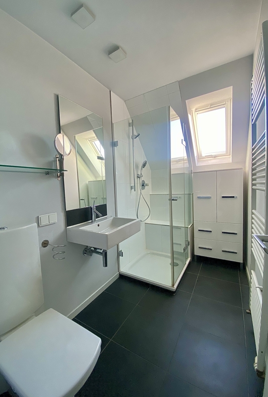 - Stilvolles, neu renoviertes Tageslichtbad mit Dusche