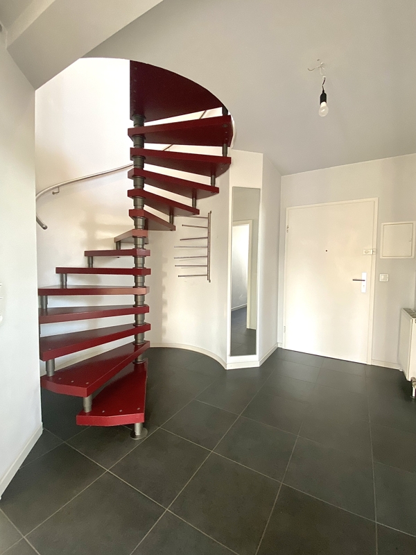 - Über eine elegante Wendeltreppe gelangen Sie in das obere Geschoss der Wohnung