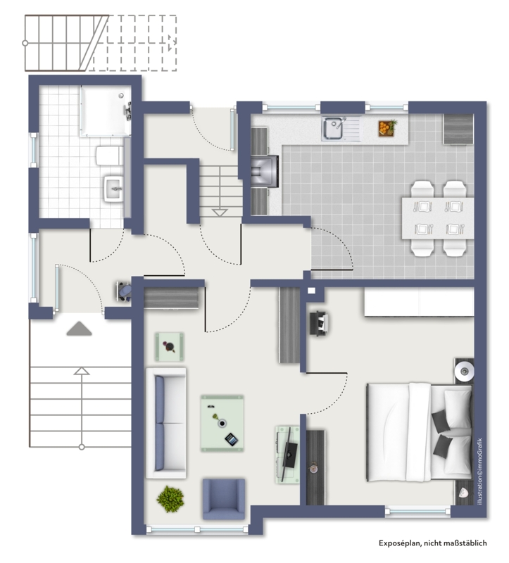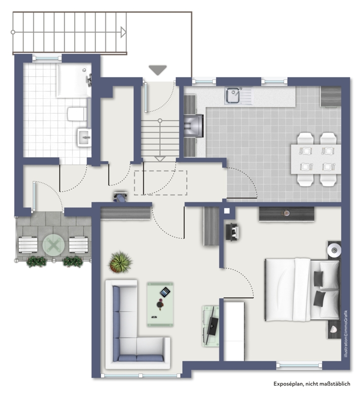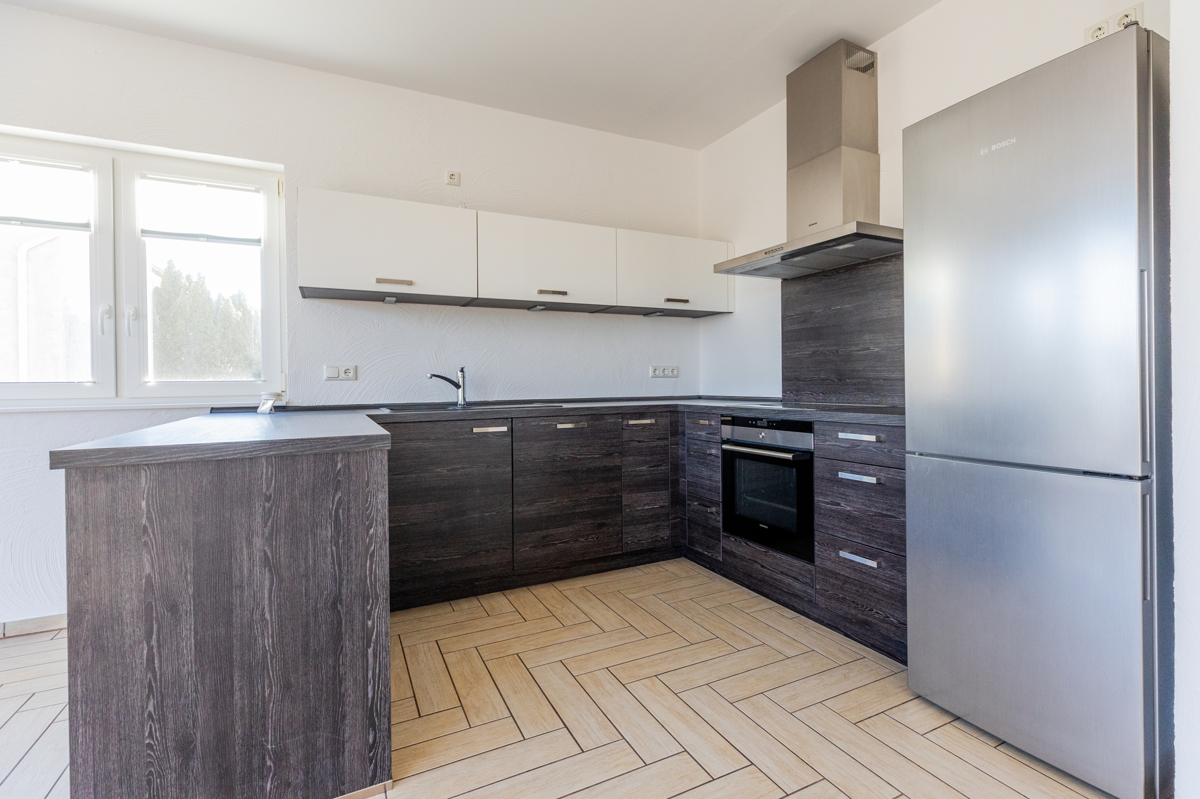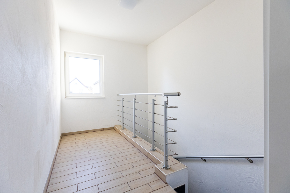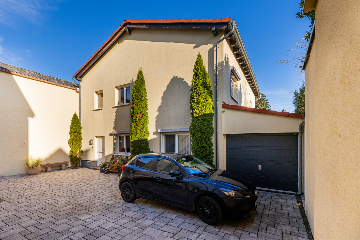 Die Wohnfläche von ca. 203 m² verteilt sich auf zwei großzügige Wohnungen. Im Erdgeschoss befindet sich eine 3,5-Zimmer-Wohnung mit einer offenen Küche im Wohn- und Essbereich. Vom Wohnzimmer gelangen Sie direkt auf eine einladende Terrasse, die an den angrenzenden Garten führt – perfekt für gesellige Abende im Freien. Die angrenzende Garage kann sowohl als Parkplatz oder auch als "Kellerersatz" genutzt werden.