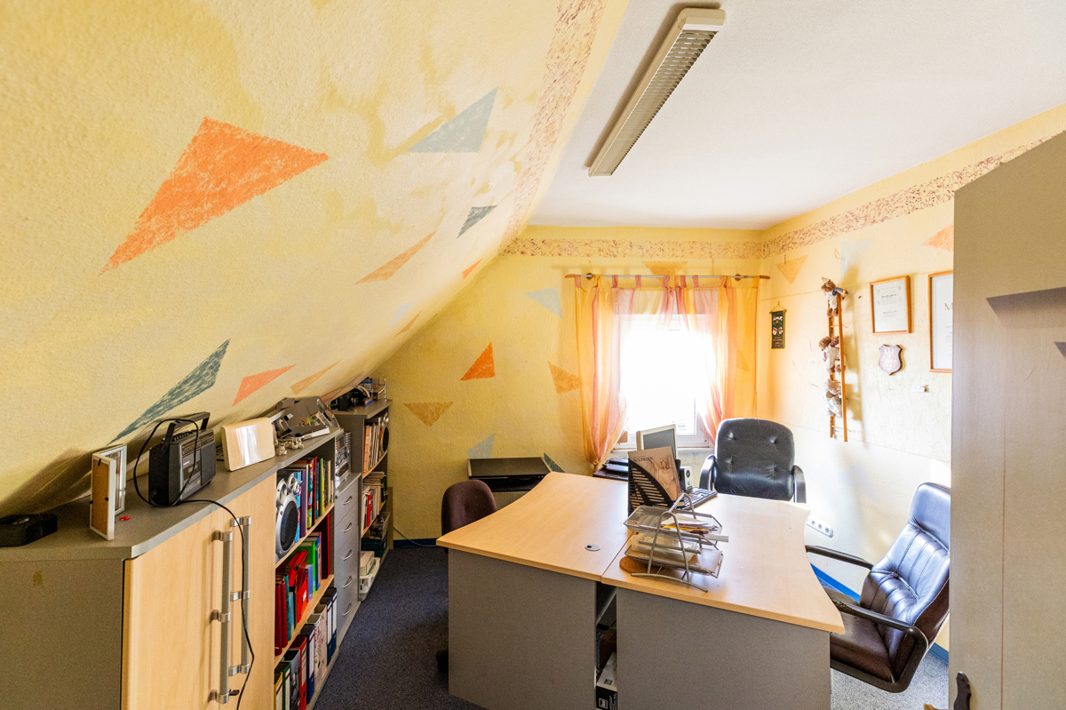 Ein weiterer Zugang führt zum Dachboden, der zusätzlichen Stauraum oder mögliche Erweiterungspotenziale bietet.