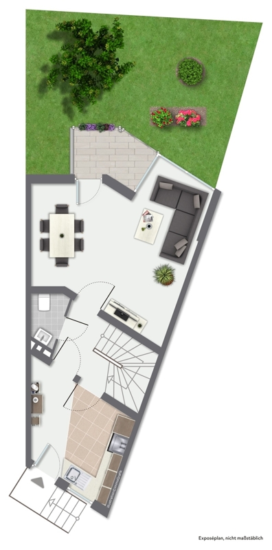 Das Reihenmittelhaus in Bischofsheim besticht durch seine moderne und durchdachte Raumaufteilung. Im Erdgeschoss empfängt Sie eine helle, einladende Küche, die ideal für kulinarische Abenteuer und geselliges Beisammensein ist. Angrenzend befindet sich ein Gäste-WC, das zusätzlichen Komfort bietet.Der großzügige Wohn- und Essbereich ist der zentrale Treffpunkt des Hauses und bietet viel Platz für Familie und Freunde. Von hier aus gelangen Sie direkt auf die Terrasse, die perfekt für entspannte Abende im Freien ist.