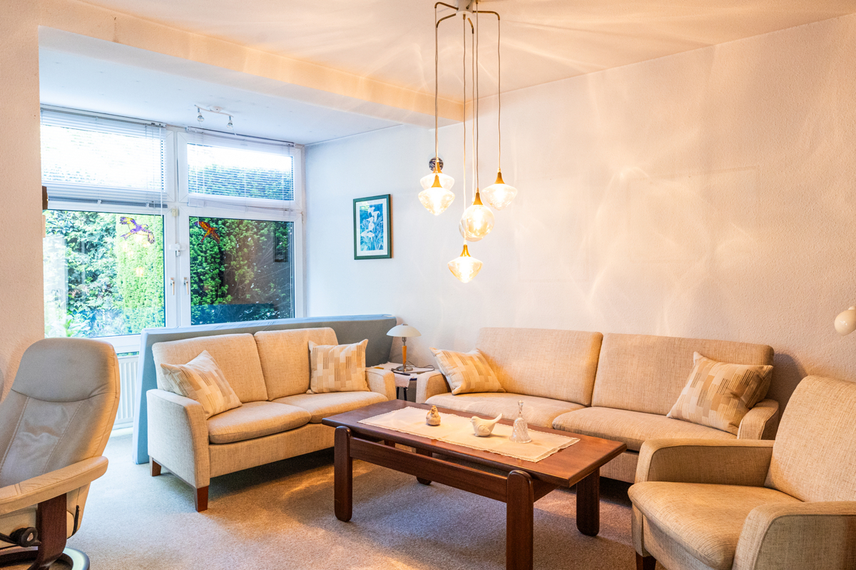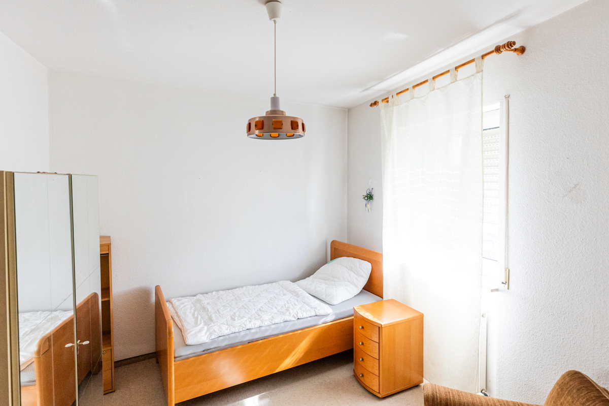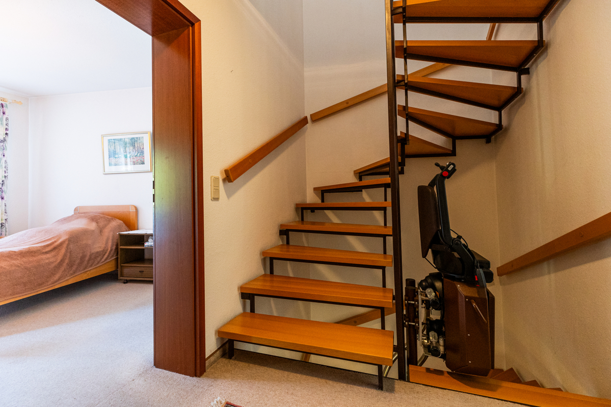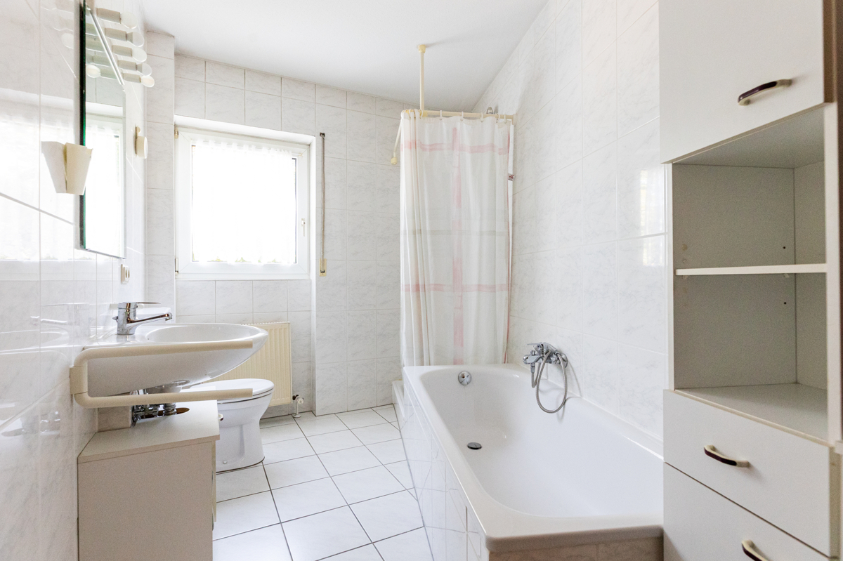 Im Obergeschoss finden sich zwei gemütliche Schlafzimmer, die sich sowohl als Rückzugsorte als auch als individuelle Arbeitsräume nutzen lassen. Ein Tageslichtbad mit Dusche und Wanne komplettiert dieses Stockwerk und bietet alles, was man für die tägliche Pflege benötigt.