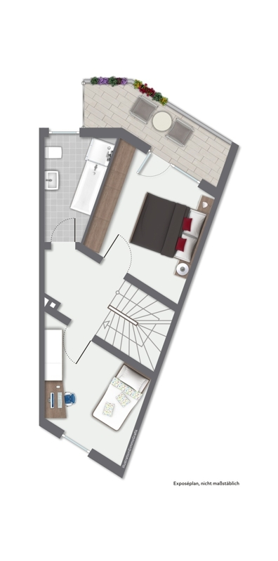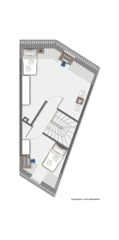 Das Dachgeschoss überrascht mit zwei zusätzlichen Zimmern, ideal als Kinderzimmer, Gästezimmer oder als Hobbyräume.