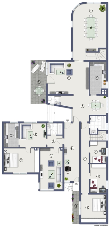 Beide Wohnungen sind zurzeit freigestellt. Bei einer Vermietung könnten Sie folgende Mieten erzielen: