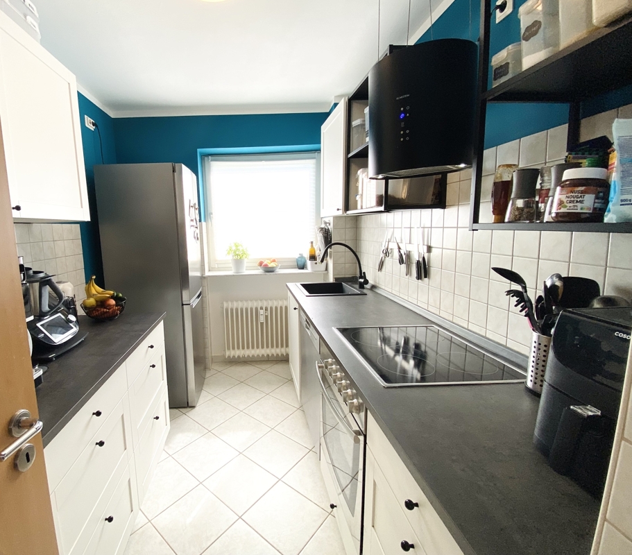 Das Badezimmer ist mit einer Badewanne ausgestattet und verfügt über Anschlussmöglichkeiten für Waschmaschine und Wäschetrockner – ein echtes Plus an Komfort. Die separate Küche ist mit einer modernen Einbauküche versehen und bietet alles, was das Herz von Hobbyköchen höherschlagen lässt. Die Einbauküche aus 2021 kann separat erworben werden.