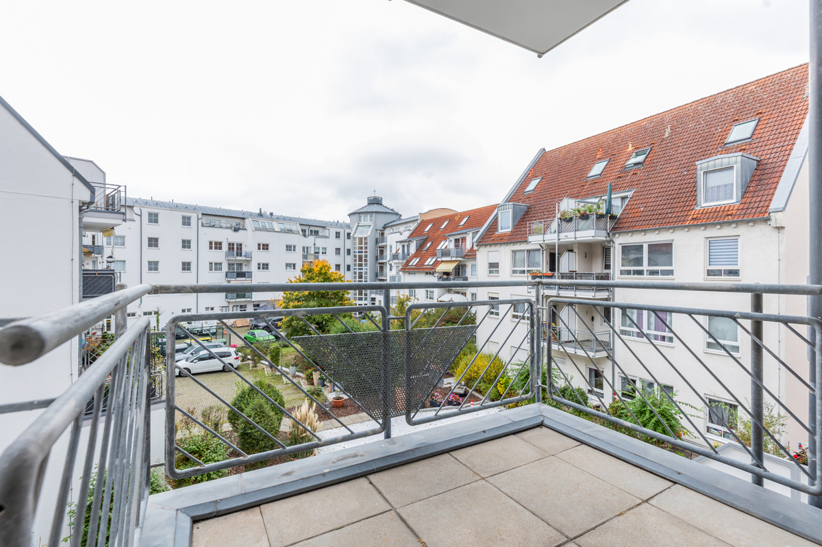 Der Balkon lädt an sonnigen Tagen zum Entspannen ein.