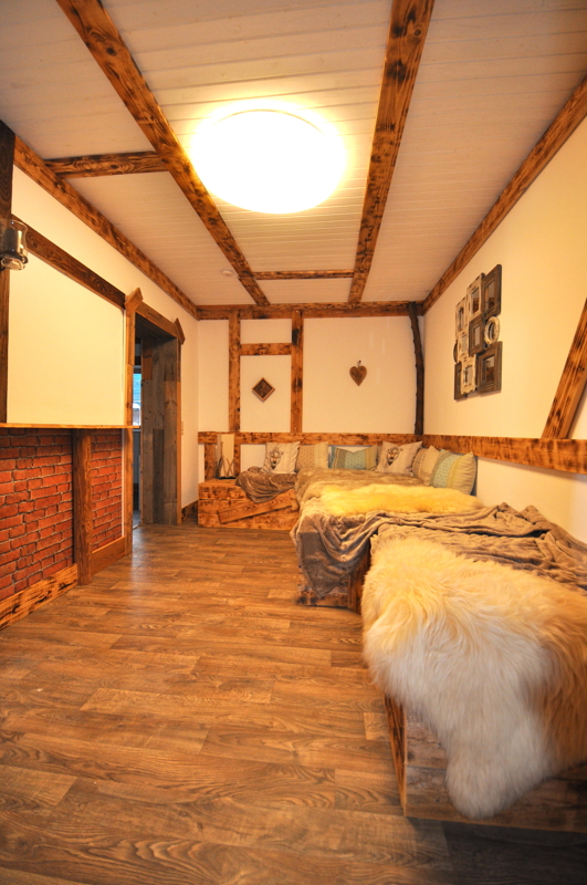 Im Wohn-und Esszimmer sorgt der Kamin bei kalten Temperaturen für eine gemütliche Atmosphäre.