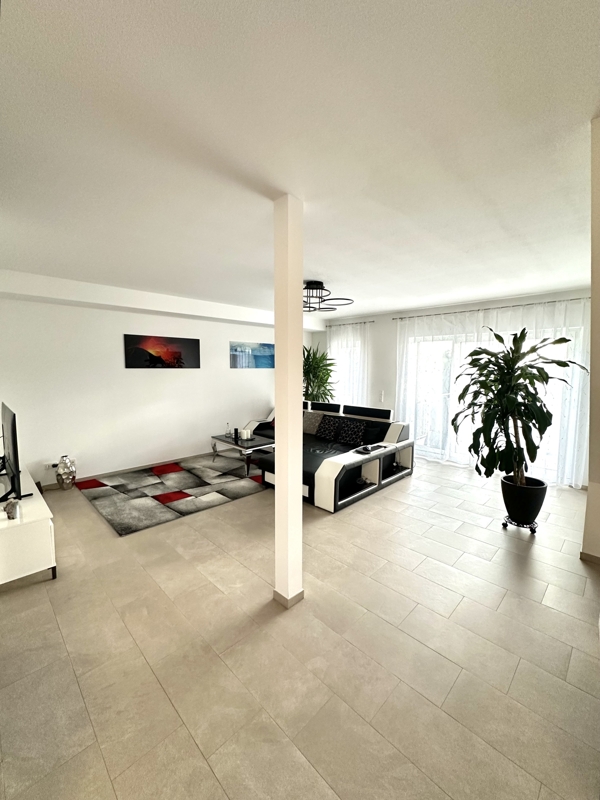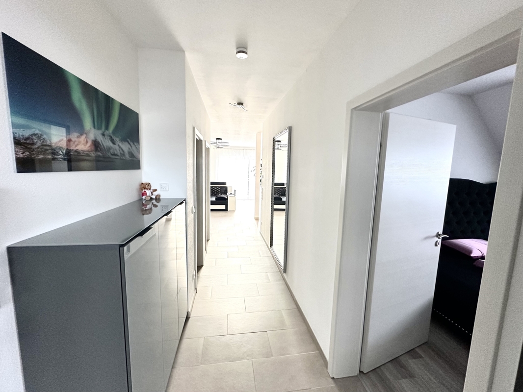 Das erst in 2023 in malerischer Feldrandlage erbaute Haus besticht durch 6 Wohneinheiten in modernster Technik mit Wärmepumpe und 3-fach-Verglasung.Zur Vermietung kommt eine 2-Zimmer-Dachgeschoss-Wohnung mit einer großzügigen Aufteilung. Die ca. 94m² verteilen sich auf das Wohnzimmer mit offener Küche und Ausgang zum großen Balkon mit traumhaftem Blick bis zum Okrifteler See, das Schlafzimmer, einen Hauswirtschaftsraum sowie ein Gäste-WC und ein großzügiges Badezimmer mit Dusche und Wanne. Alle Rollläden sind elektrisch, die Bodenbeläge sind teils aus Feinsteinzeug oder mit Vinylboden verlegt.